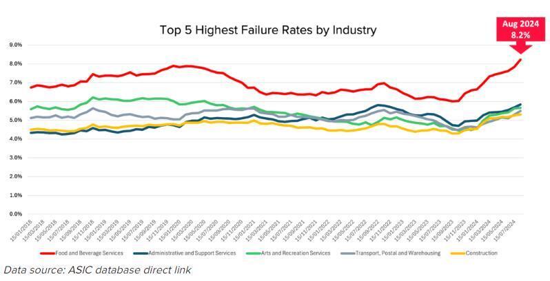 The commercial credit reporting bureau’s August Business Risk Index (BRI) forecasts that the average failure rate for Australian businesses will increase from 4.65% to 5.20% in the 12 months to August 2025. This translates to the potential failure of more than 134,000 small businesses.